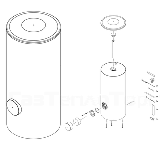 - Бойлер непрямого нагріву циліндричної форми.