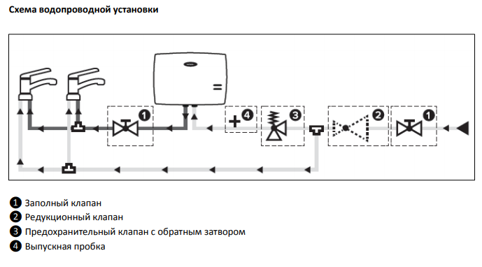 ПОПЕРЕДЖЕННЯ: При підключенні декількох місць споживання одночасне споживання води з декількох змішувачів одночасно зменшує температуру вихідної води. Відстань між місцем споживання і нагрівачем не повинно перевищувати 2 метри, це запобігає зайві втрати тепла і потужності.