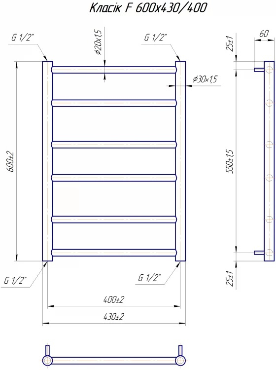 Водяна рушникосушка Mario Класік F 600x430/400 хром 4820111357000