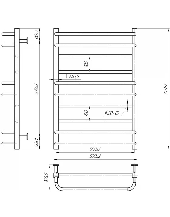 Водяна сушка для рушників Mario Inox Преміум Люкс 770х540/500 нержавіюча сталь хром 4820258987221
