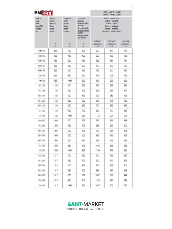 Вихідна потужність вказана для пофарбованих моделей. Хромовані та матові моделі мають нижчу тепловіддачу (приблизно на 25% менше).