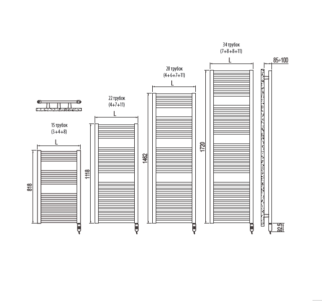 - Сталевий полотенцесушитель з горизонтальними закругленими трубками діаметром 23 мм