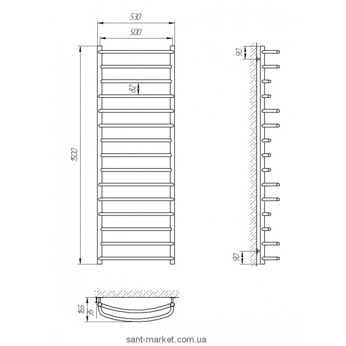 Водяний полотенцесушитель Laris колекція Евромикс П драбинка 530х1500х165 хром 71207575