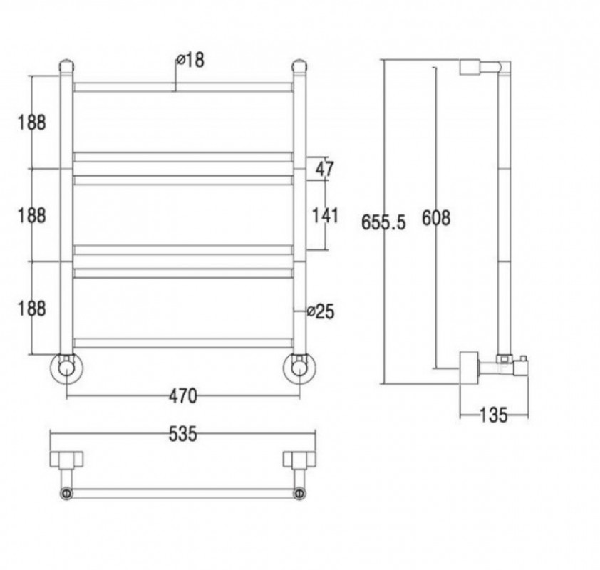 Водяний полотенцесушитель Margaroli колекція Mini драбинка 535х656х135 хром 3-486