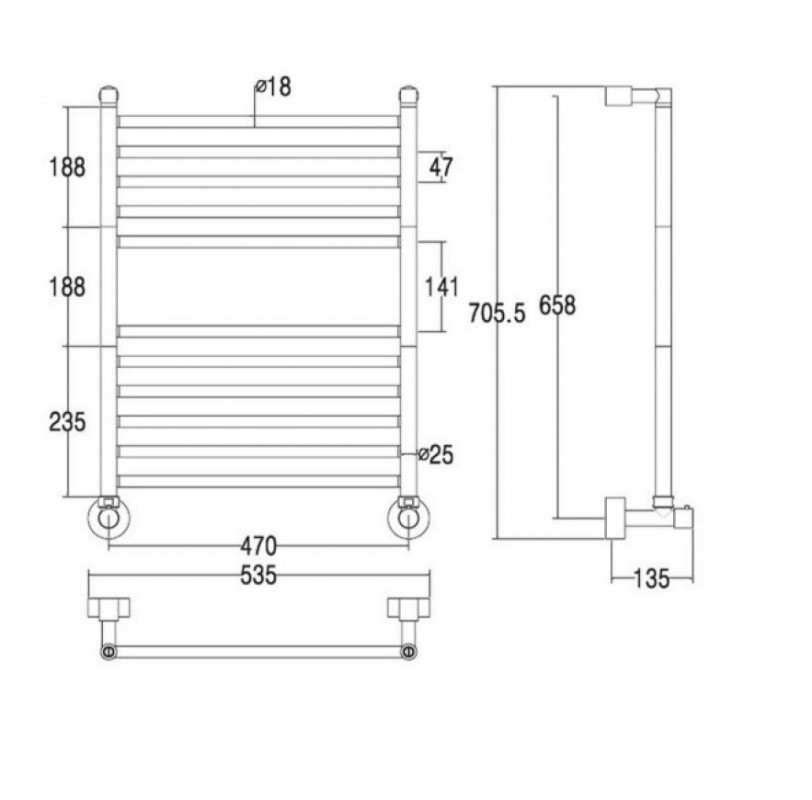 Водяний полотенцесушитель Margaroli колекція Mini драбинка 535х706х135 хром 3-484