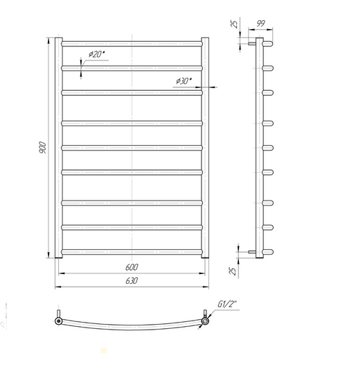Водяний полотенцесушитель Mario Класик 900х630 / 600 мм 4820111350124