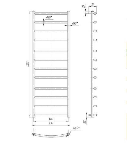 Водяний полотенцесушитель Mario Класик 1200х430 / 400 мм