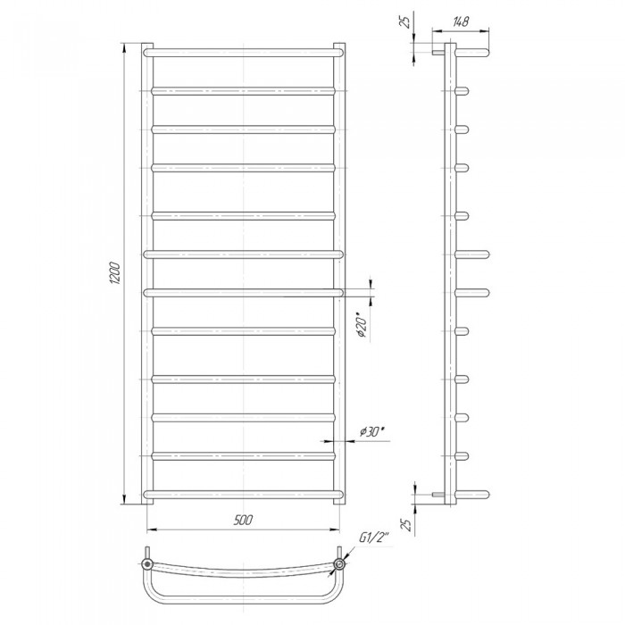 Водяний полотенцесушитель Mario Люкс 1200x530 / 500 мм нержавіюча сталь
