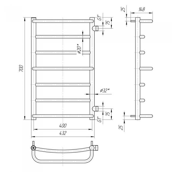 Полотенцесушитель Люкс Б / П виконаний у формі драбинки і призначений для бічного підключення. Він складається з 7 ребер, три з яких виступають. Така конструкція дозволить розмістити для сушки банний халат або іншігабаритні речі. Такий полотенцесушитель створить комфортну температуру в приміщенні, позбавить ванну кімнату від грибка і запітнілих дзеркал.