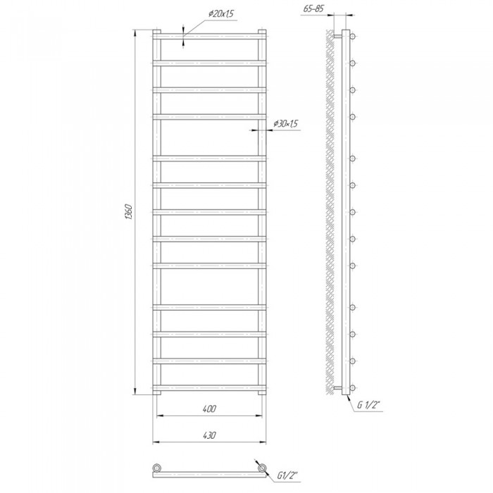 Водяний полотенцесушитель Mario Турин 1360x430 / 400 мм нержавіюча сталь