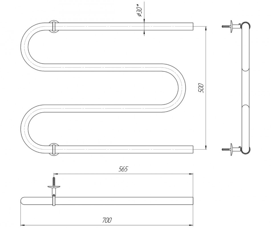 Водяний полотенцесушитель Mario Змійка 30 530х700 / 500 мм 4820111350650