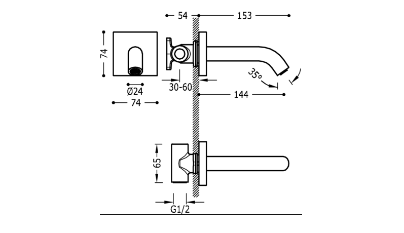1) виливши для ванни Tres Docce настінний чорний матовий