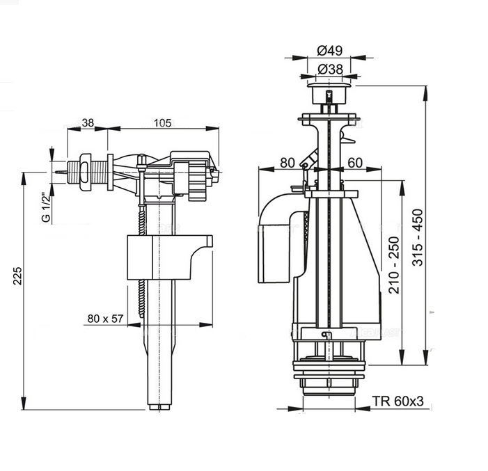- Розділ: Зливні механізми (арматура / клапан) для бачка унітазу
