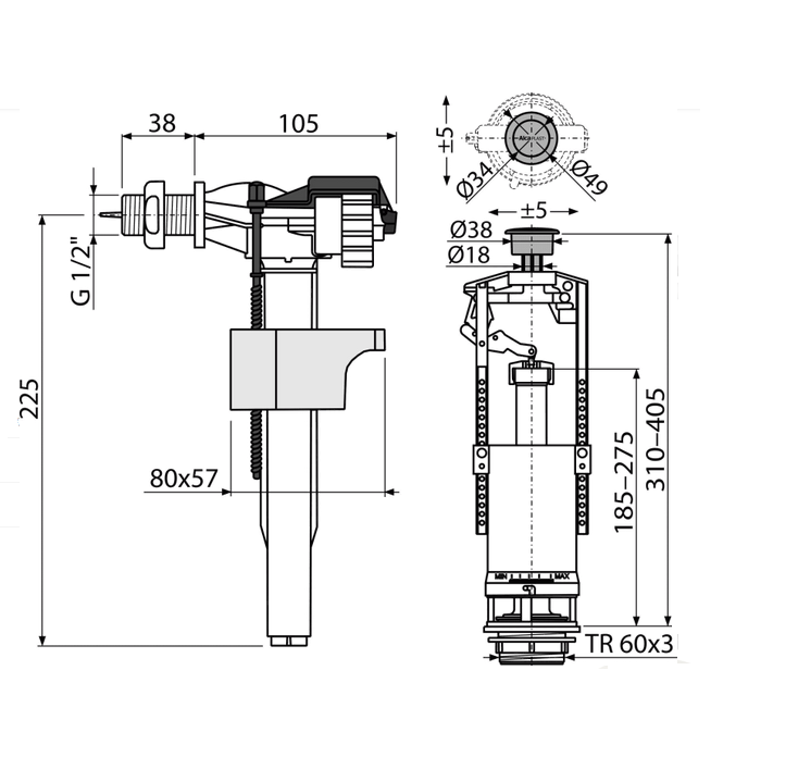 - Конструкція дозволяє регулювати висоту механізму в залежності відвисоти бачка