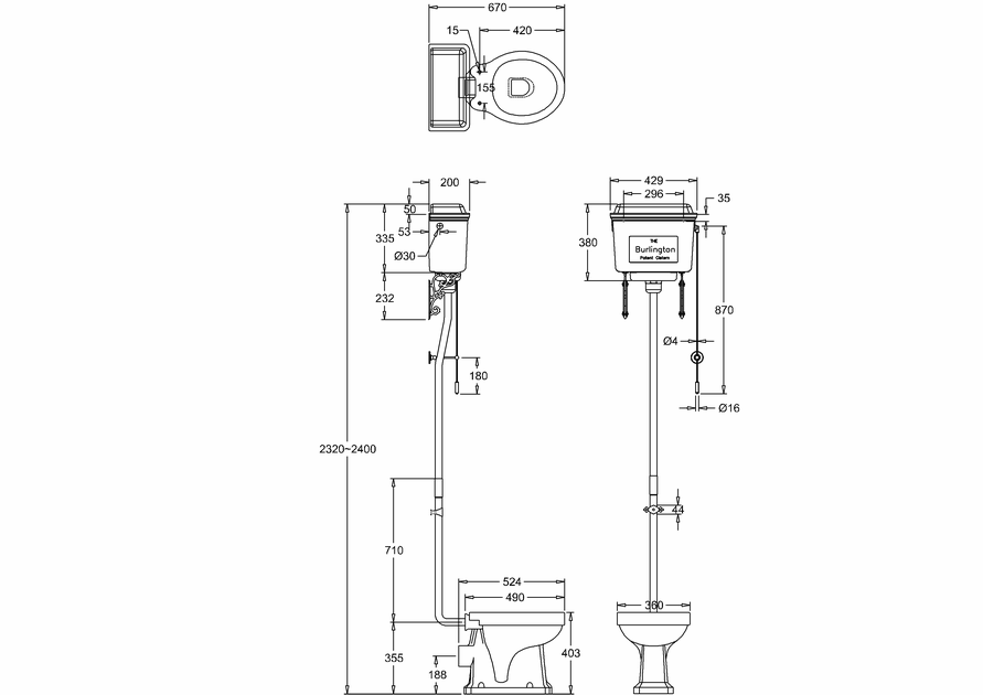 1) Високий зливний бачок для унітазу Burlington полірований алюміній