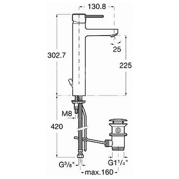 Високий змішувач для раковини одноважеля Roca Targa з донним клапаном