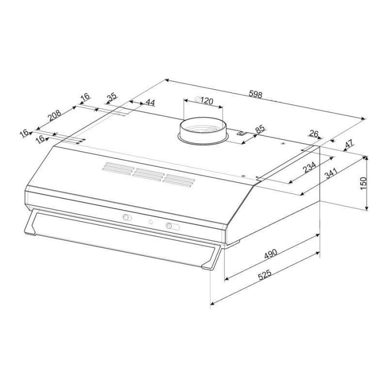 Для освітлення поверхні готування використовується 1 світильник. Клас енергозбереження витяжки даної моделі: e. Використовується фільтр: н / ж жирової. У комплект поставки входять: витяжка, елементи кріплення, інструкція.