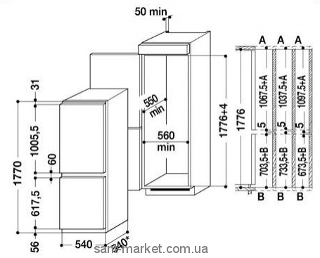 Whirlpool Холодильник з нижньою м / к для вбудовування ART6711A ++