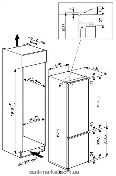 Whirlpool Холодильник з нижньою м / к для вбудовування ART9610A +