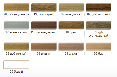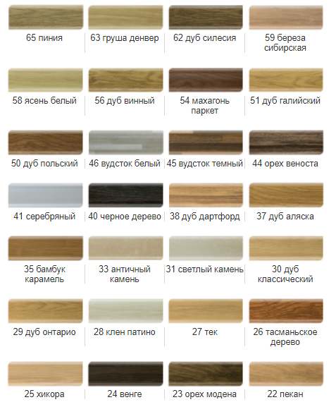 Колір палітра (фото), при замовленні до артикулу NGTFxx замість хх ставимо номер кольору (наприклад NGTFF6 колір "дуб бурштиновий")
