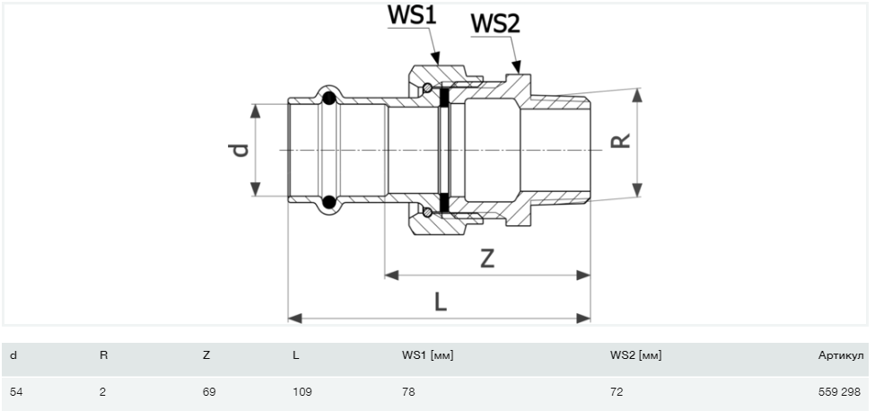 1) частини пускового різьбовій роз'ємний Viega Prestabo 1165 54хR2 нелегована сталь