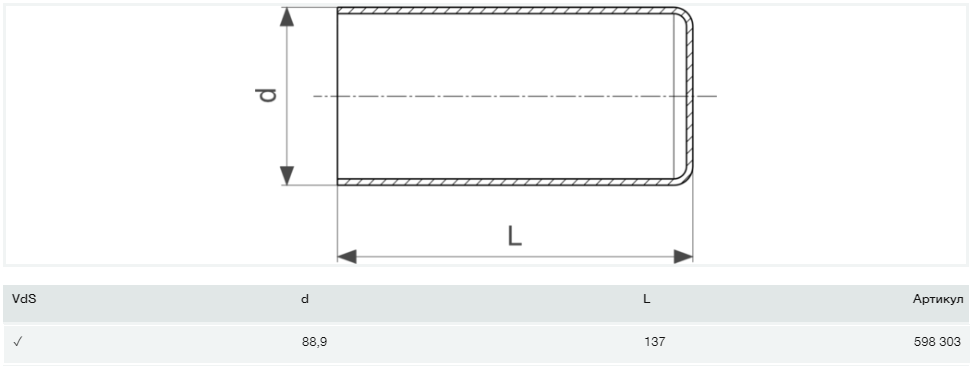 Заглушка Viega Prestabo XL 1157.1XL 88.9 нелегована сталь