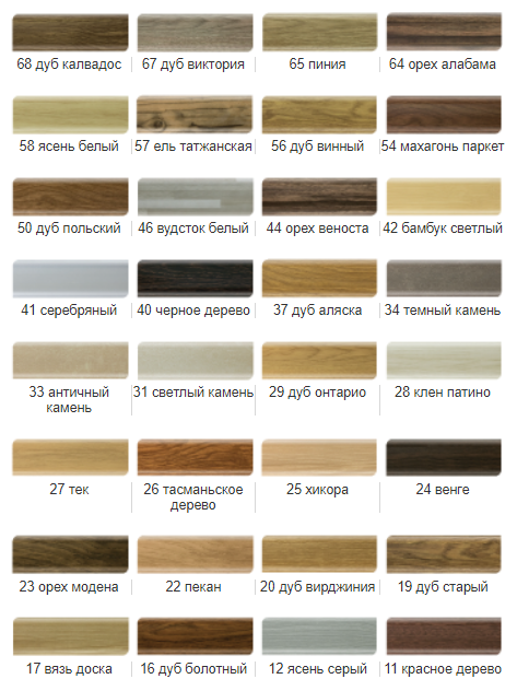 Колір палітра (фото), при замовленні до артикулу SG7Dхх замість хх ставимо номер кольору (наприклад SG7DF4 колір "дуб рояль")