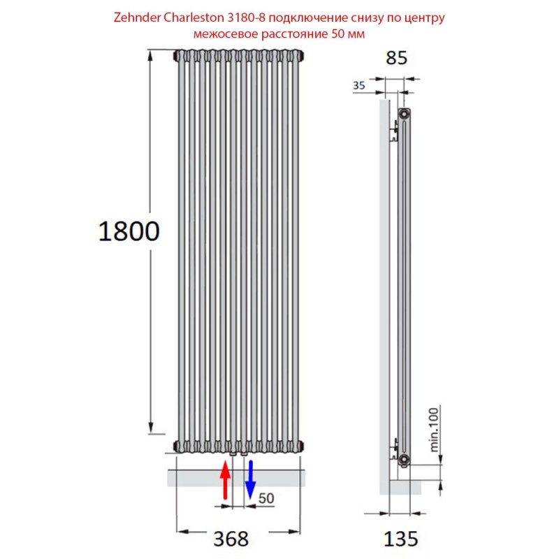 Радіатор центрального опалення Zehnder Charleston 368 x 1800 білий 3180-8-9016-3470-SMB