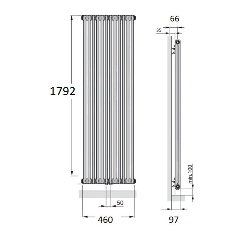Радіатор центрального опалення Zehnder Charleston 460 X 1792 білий 2180-10-9016-3470-SMB
