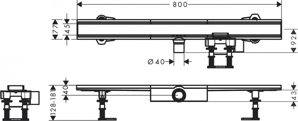 Жолоб водостічний Hansgrohe RainDrain Compact 800 мм матова нержавіюча сталь