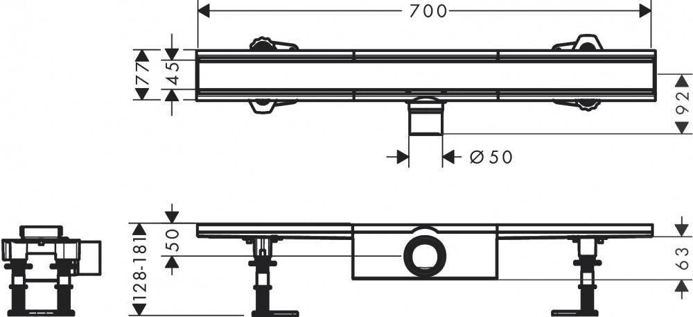Жолоб водостічний Hansgrohe RainDrain Compact для стандартної установки 700 мм матова нержавіюча сталь