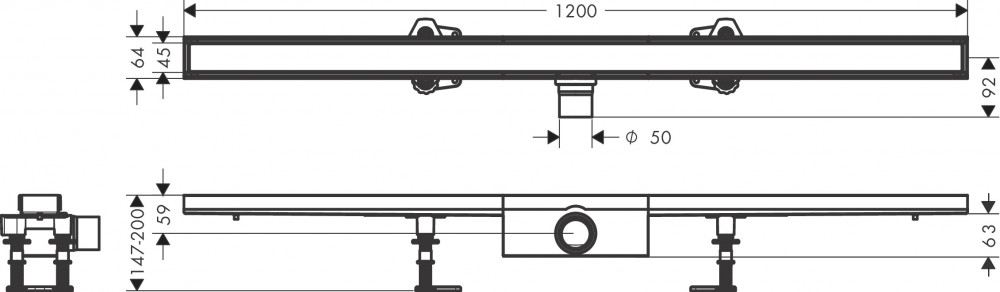 - Повний комплект душового каналу під плитку для стандартного монтажу