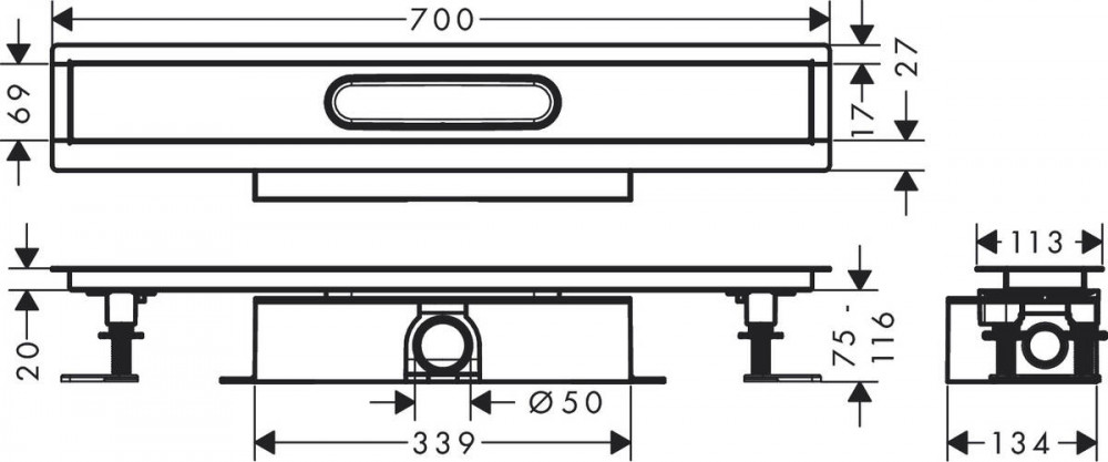 Жолоб водостічний Hansgrohe uBox universal для стандартної установки 70 см