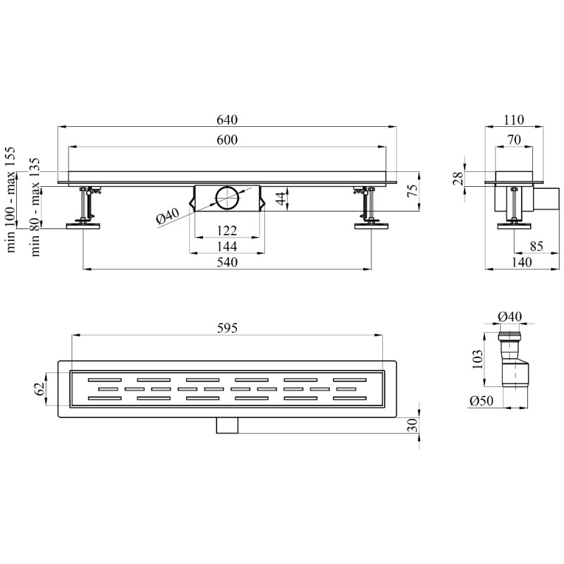 Жолоб водостічний Kroner KRP Eifel-L60Linien з решіткою 600 мм нержавіюча сталь CV034168