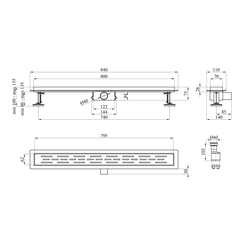 Жолоб водостічний Kroner KRP Eifel-L80Linien з решіткою 800 мм нержавіюча сталь CV034170