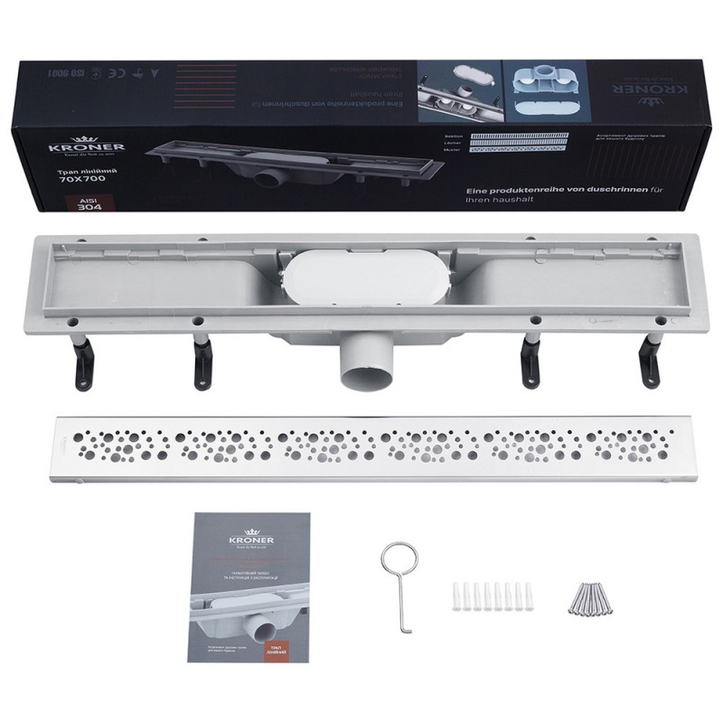 Жолоб водостічний Kroner KRP Harz M70Muster з решіткою 700 мм нержавіюча сталь CV029586