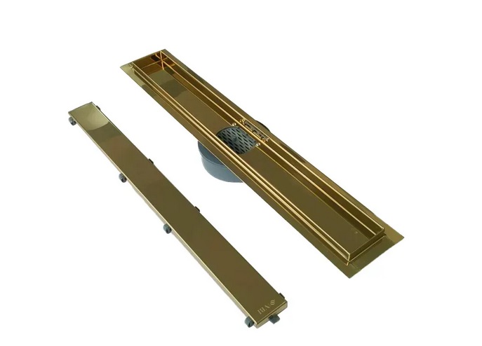 Жолоб водостічний VBI Fort 2 в 1 з ґратами 80 см нержавіюча сталь золото