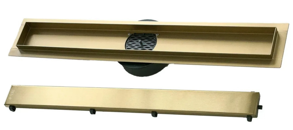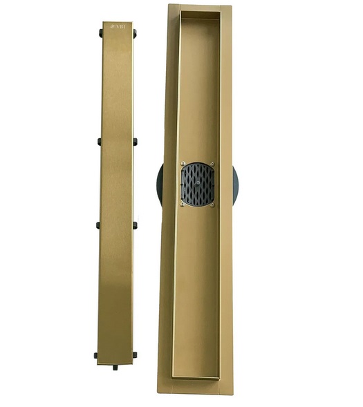 Жолоб водостічний VBI Fort 2 в 1 з решіткою 100 см нержавіюча сталь матове золото VBI-060110BG