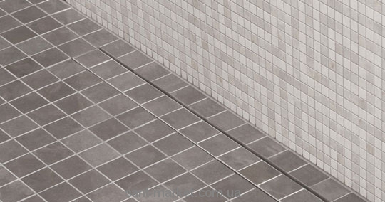 Модель ринвипризначена для монтажу на підлогу, що має плиткове облицювання. У комплекті до жолоба додані грати. Виконана вона таким чином, що має заглиблення, для закладки плитки. Завдяки цій особливості у встановленому варіанті, на підлозі залишаються видні лише прорізи зливу в плиткових швах. Крім того, внутрішня частина решітчастої поверхні покрита спеціальним складом, що сприяє кращому зчепленню клейового шару. Такий душовий лоток підходить для інтер'єру, де не можна використовувати металеві або скляні грати. Він не псує композицію і не перетягує він погляд. Установку можна проводити поблизу стіни або на відкритій ділянці.
