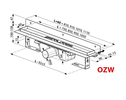1) Жолоб водостічний Ravak Runway OZW 950 нержавіюча сталь