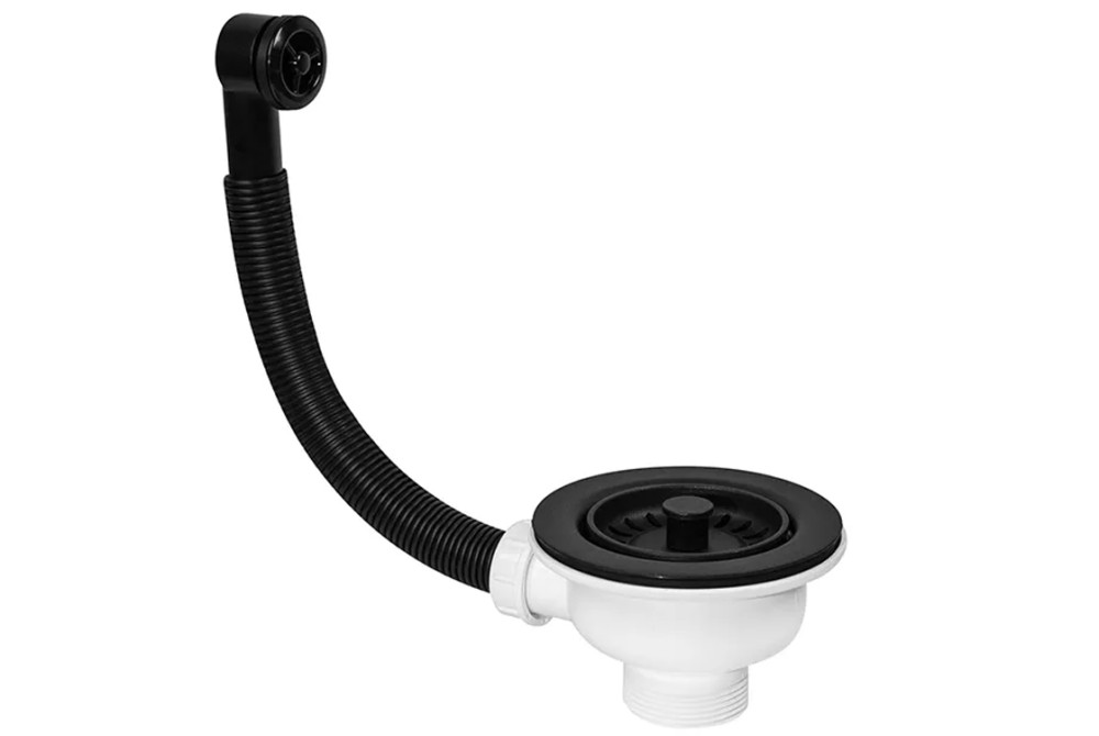 Слив для кухонної раковини McAlpine 113 мм x 1½ з круглим переливом, чорний матовий