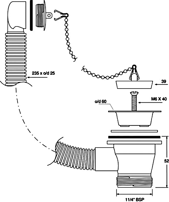 Слив для раковини McAlpine з переливом поліпропілен хром