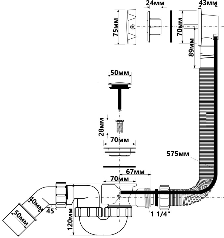 - Розділ: Сифони та сливи-переливи для ванн