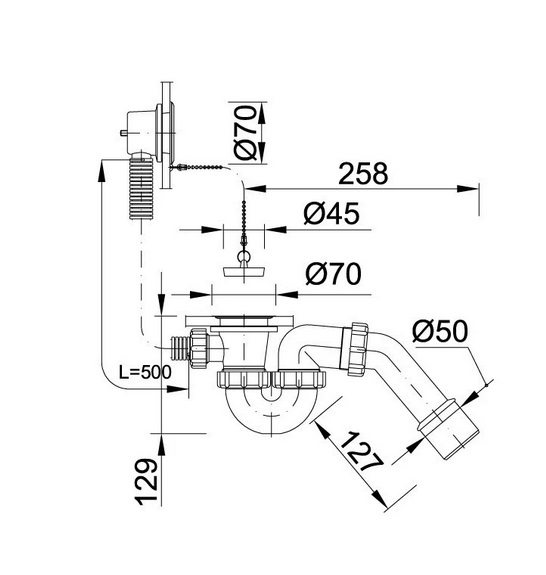 Злив з переливом для ванни Styron з ланцюжком хром STY-536