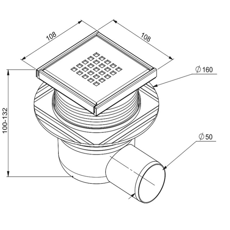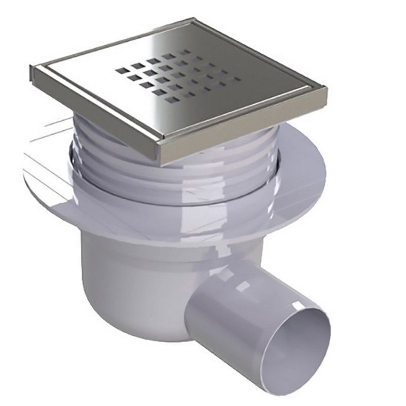 1) Зливний трап для душу Prevex Cubo зі сталевими гратами 106x106 мм
