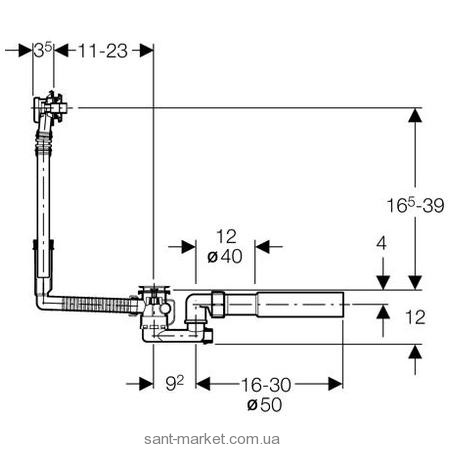 Для ванн та душових піддонів із зливним отвором d 52 мм.