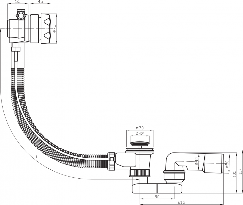 1) Злив-перелив для ванни Jika Deep автомат 40/50 мм хром