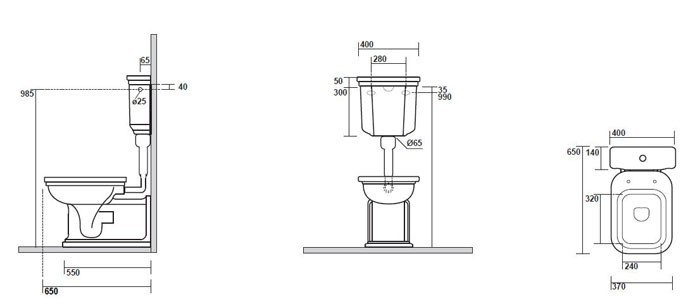 1) Зливний бачок для унітазу низький Kerasan Waldorf для управління бічною ручкою чорний глянсовий