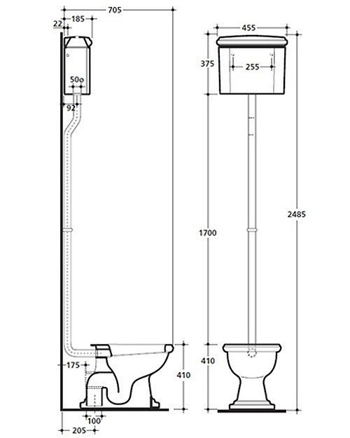 1) Зливний бачок підвісний для унітазу високий Kerasan Retro прямокутний білий