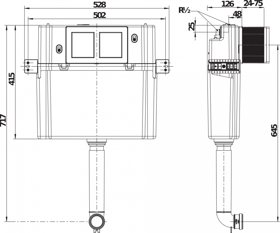 1) Зливний бачок прихованого монтажу Jika Modul для підлогового унітазу